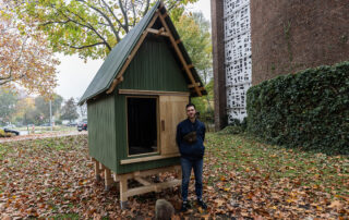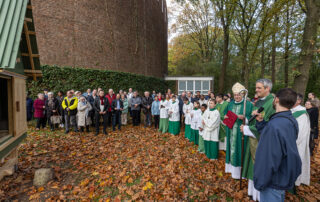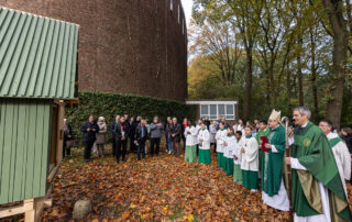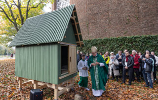 Neben der Kirche St. Hedwig in der Vahr segnete der Bischof am Sonntag nach der Heiligen Messe mit den Katholiken aus dem Bremer Südosten eine Kapelle. Das Gebäude hat der Künstler Nicolas-Friedrich Hohlt gestiftet; es ist seine Masterarbeit im Fach Design an der Hochschule für Künste in Bremen.