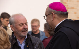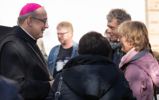 Anschließend schüttelte Bischof Dominicus zahlreiche Hände und nahm sich Zeit für die Begegnung, unter anderem mit dem Osterholzer Ortsamtsleiter Ulrich Schlüter. Außerdem bekam er einen ersten Einblick in die Sparpläne der Kirchengemeinde St. Raphael, zu der die Kirche St. Hedwig gehört.